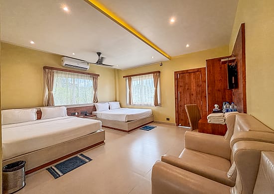 Perfect for families and groups, our Family Quad Rooms offer a spacious and modern retreat on both the ground and first floors. Enjoy a comfortable stay with a serene view of the surrounding landscape. Room Features: Amenities: Each room is equipped with AC,...